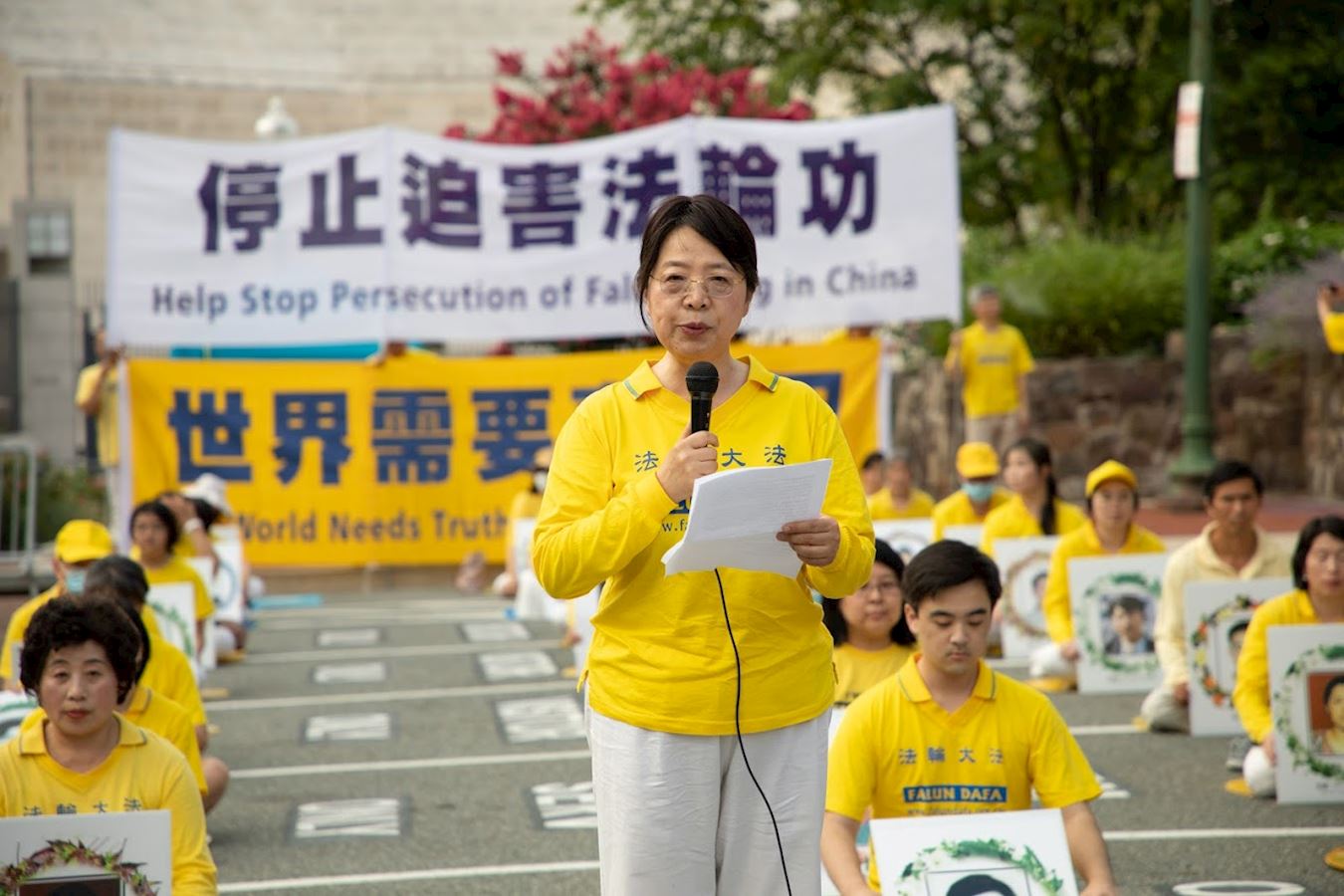 多位法轮功学员在集会上讲述了他们的亲身经历。来自大连的三姐妹——王春荣,王春英和王春彦都曾是事业成功人士,在中共对法轮功的迫害中,她们事业被中断、身陷囹圄,总计被关押十六年半;兰州大学博士生谭晓荣和丈夫进京上访,为法轮功鸣冤,夫妻二人被判劳教,当时两岁的儿子失去了父母的照看;二十一年的迫害占据了九零后女孩王玺生命中的大部份时间,这场迫害让她和弟弟在童年和少年时期就经历了家破人亡的悲痛,但她相信象她父母一样为信仰和正义而抗争的法轮功学员是当今真正的英雄;前吉林建筑师赵庆凯多年来目睹妻子和两个姐妹因不放弃信仰而被迫害,他承受巨大的心理压力,经历过居无定所、颠沛流离、妻离子散的生活,他看清了中共的邪恶本质,认为中国人只有退出中共才有希望。