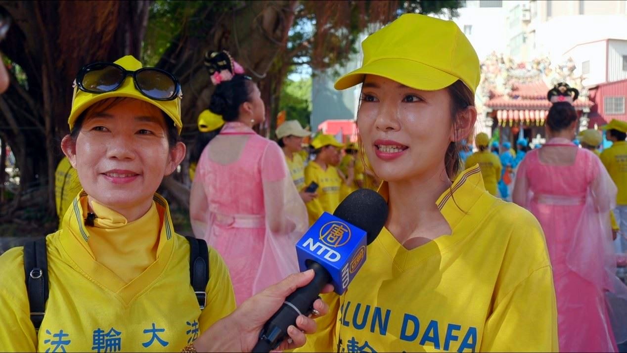 法轮功学员唐女士表示:“我自己在法轮大法当中受益良多,因为在中国大陆,受到这么严重的迫害,那我想我应该站出来告诉大家法轮大法好,是我应该做的事情。”小学二年级即随妈妈走入修炼的女儿则说:“我接触大法的时候是小朋友,然后到了长大出社会,师父也在大法中告诉我们,就是大法弟子要符合真善忍,然后你就可以从这边去分辨出什么是好的,什么是坏的。”