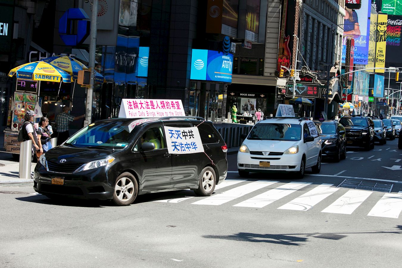 数十辆车鱼贯而行,真相车队途经法拉盛、曼哈顿中城、唐人街、中领馆、布碌仑八大道等闹市区。车身两侧悬挂中英文真相横幅:“拒绝中共,远离瘟疫”;“中共是最邪恶病毒,祸害全世界”;“天灭中共,天佑中华”;“法轮大法好,真善忍好”;“法轮大法是人类的希望”;“法轮大法洪传世界”;“请帮助停止迫害法轮功”;“庆祝3.5亿人退出中共党团队”……