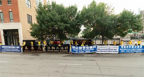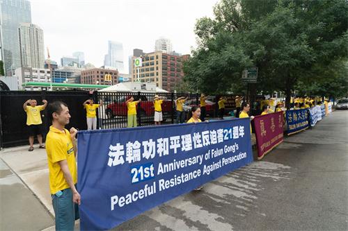 ![]() 图1~4:法轮功学员在芝加哥中领馆前抗议中共21年来的残酷迫害 |
