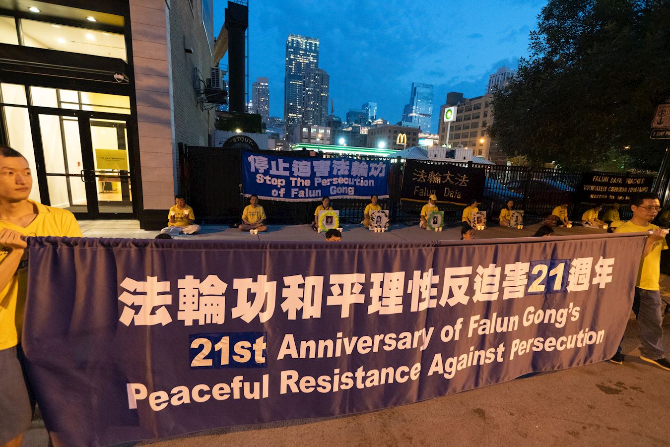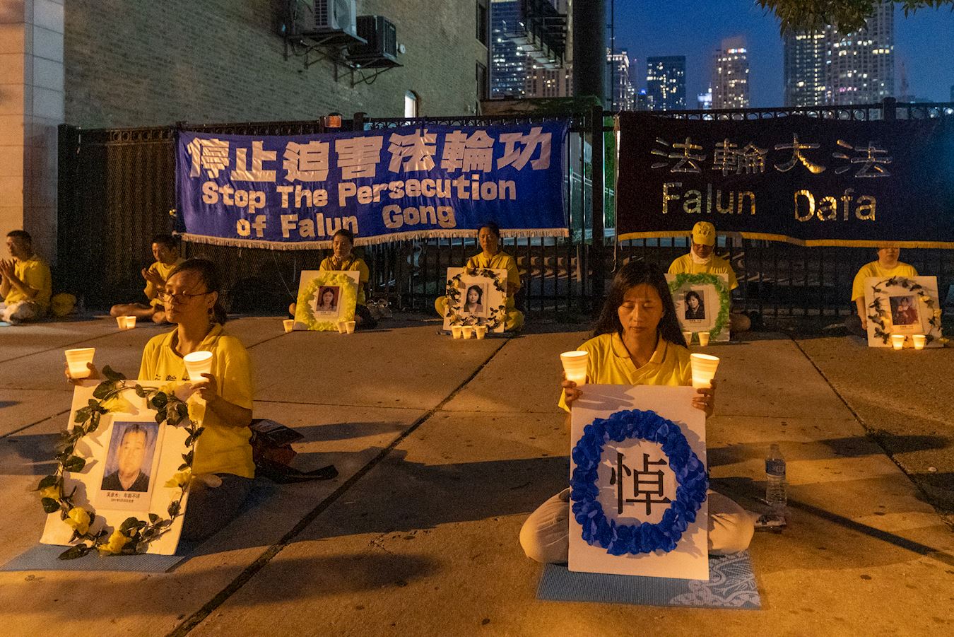 ![]() 图6~8:法轮功学员在芝加哥中领馆前举行烛光夜悼,悼念被中共迫害致死的同修。 |