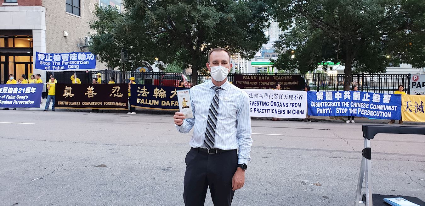 法轮功学员的坚韧不拔赢得了各界的支持。伊州国会议员比尔·福斯特(Bill Foster)在发来的支持信中说:我自豪自己作为民权律师的儿子,从坚强的道德信念中长大,认为无论种族和信仰或其它,所有人都应享有平等的权利和保护。二十多年来,中国政府一直在残酷地实施对法轮功的迫害。我与你们一起呼吁,立即结束迫使和平修炼者强迫转化和再教育的行为。