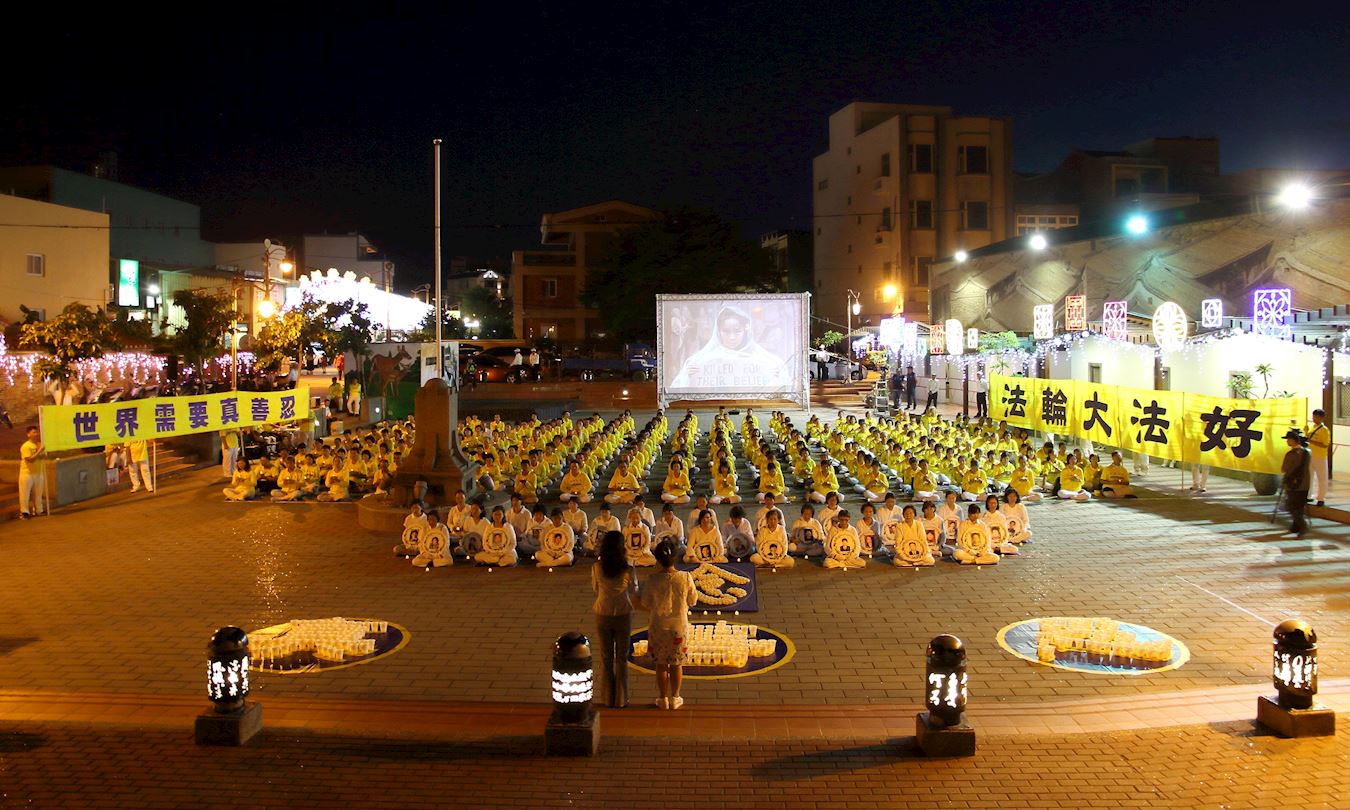 傍晚时分,学员在鹿港公会堂广场上点起盏盏烛光,悼念被中共迫害致死的法轮功学员,祈愿这场惨无人道的迫害早日结束。