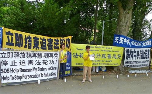 曾经被非法判刑关押七年的法轮功学员陈曼女士向使馆各级官员说:作为中国⼈,无论您是有神论者还是无神论者,我相信,通常是不会将自己置于逆天的位置的。我真心希望,迷途的同胞能够在历史转折的关键时刻,能够找回⾃⼰失落的善良,回归⽣命的本真,不要为邪恶陪葬。