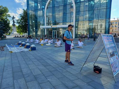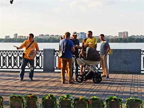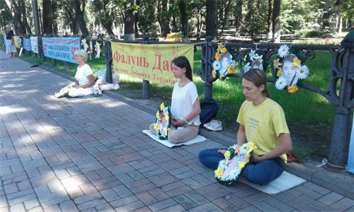 七月十九日,第聂伯罗市部份法轮功学员举行悼念活动,纪念那些为了信仰而被中共迫害致死的法轮功学员。学员们展示了功法,向行人讲真相,介绍法轮大法的基本理念“真善忍”。