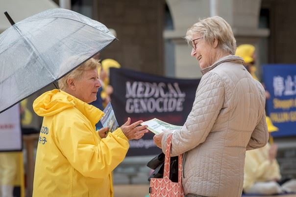 ![]() 图2:法轮功学员在活动现场介绍发生在中国的迫害事实 |