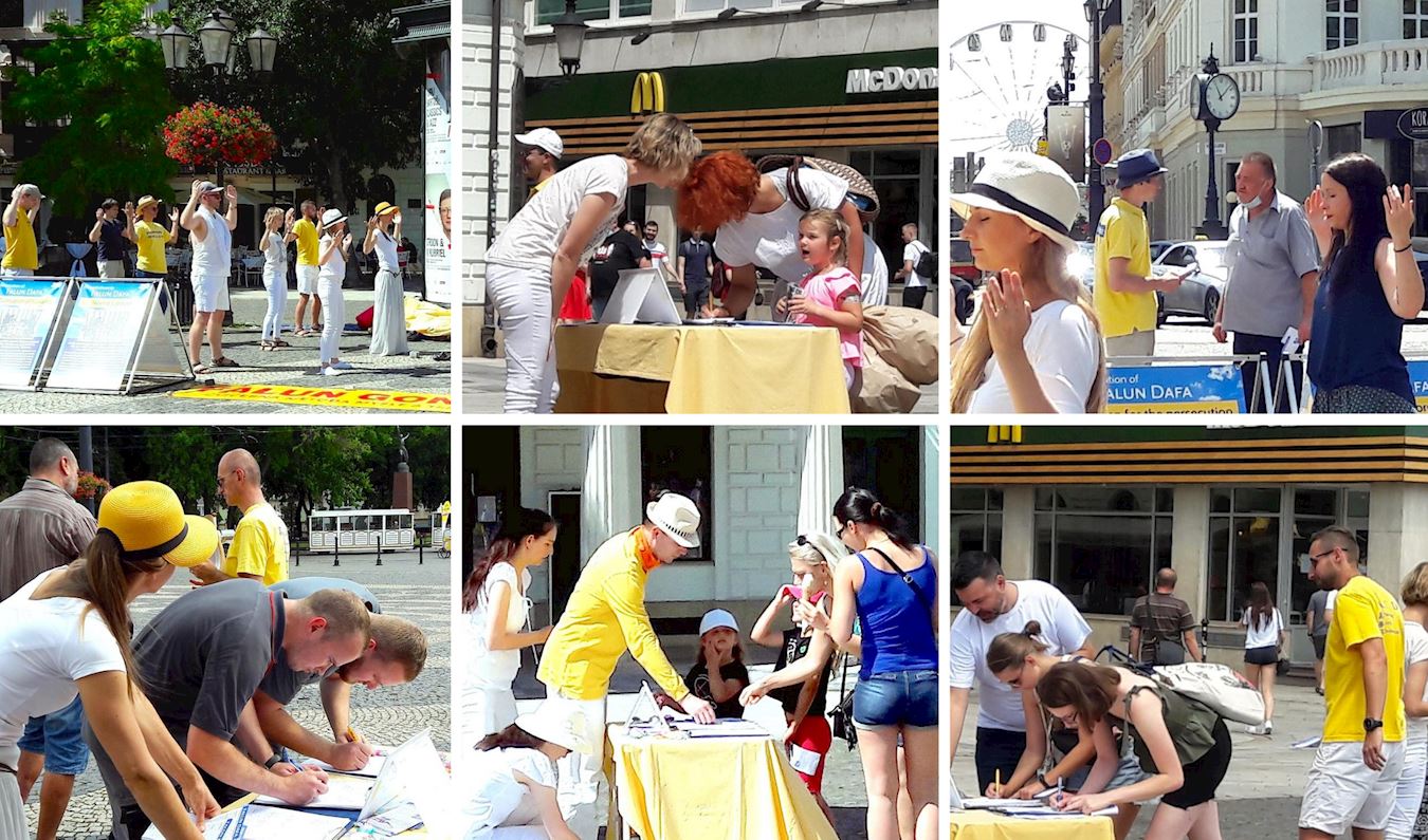 ![]() 图1:学员们在炼功,征集反迫害签名 |