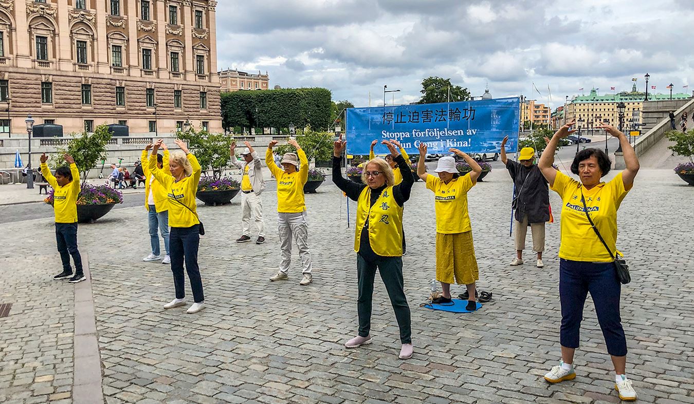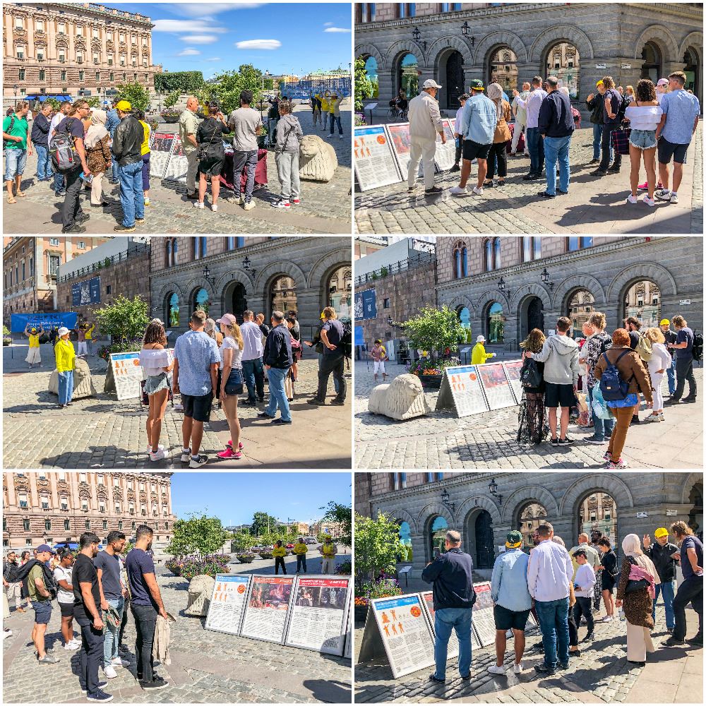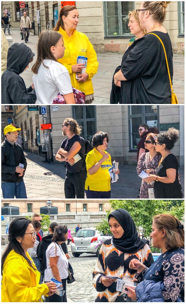 二零二零年七月二十八日周二中午,法轮功学员在瑞典首都斯德哥尔摩市中心国会大厦(Riksdag)旁的钱币广场(Mynttorget),举办讲真相活动,向过往民众展示法轮大法的美好,揭露中共对法轮功长达二十一年的残酷迫害。活动得到瑞典当地民众的关注,很多人签名支持法轮功学员反迫害的正义之举。