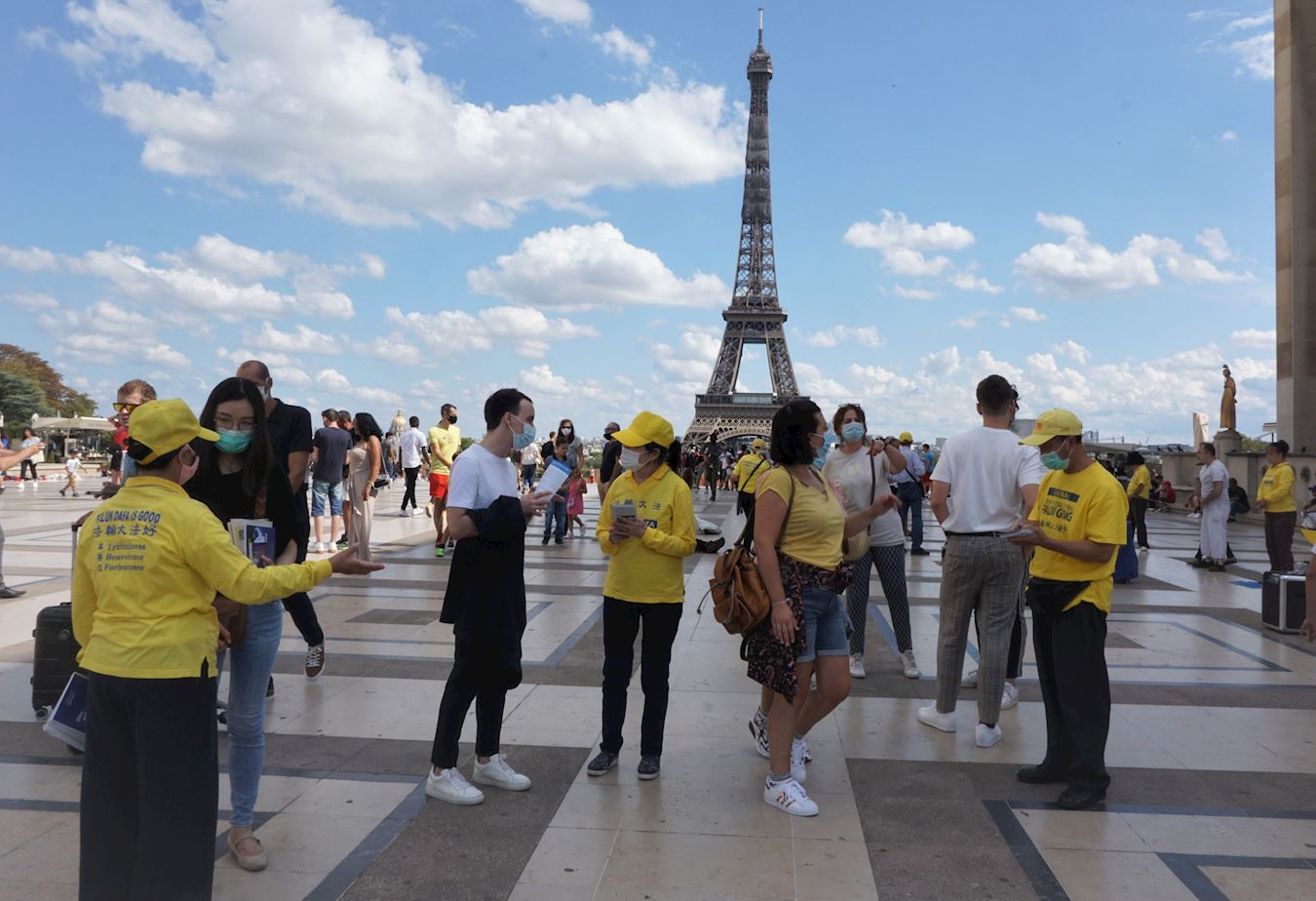 ![]() 图1:法轮功学员在巴黎人权广场举办讲真相活动。 |