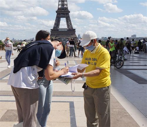 亚历克西斯·德林(Alexis Delin)在巴黎经商,他看过展板后在征签表上签了名。他说:“我虽然还不了解这套功法,但是我知道当一个人已经修炼了十几年的功法,有一天却被镇压了,遭到酷刑甚至器官都被强摘贩卖了,我不能容忍会发生这样的事情。”