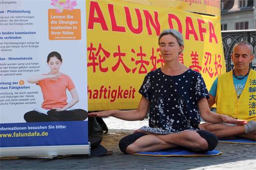 还有很多路人与学员交谈,感谢学员的付出。也有的询问炼功点的讯息,打算学炼法轮功,第二天的炼功点上就有来学炼的路人。