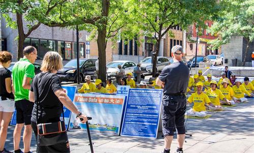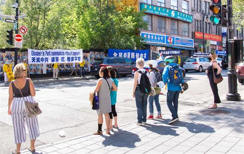 蒙特利尔市民莉蕾莎(Lraisa)观看真相展板后,大声喊出“打倒中共!”。她表示,自己很关注时事和人权问题,了解中共对自己的人民做了很多坏事,包括对法轮功的迫害。她还指出,中共政府的性质和普通政府完全不同。