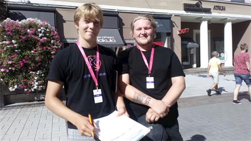 ![]() 图1:学员在图尔库的步行街上弘扬大法 |