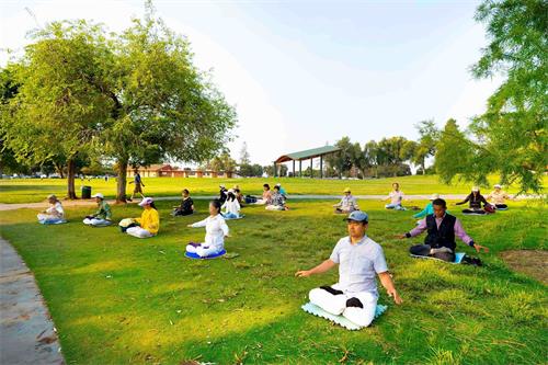她羡慕的看着打坐的法轮功学员说,“他们看起来非常放松、祥和,我对学炼法轮功非常感兴趣。”