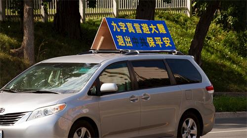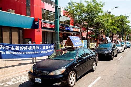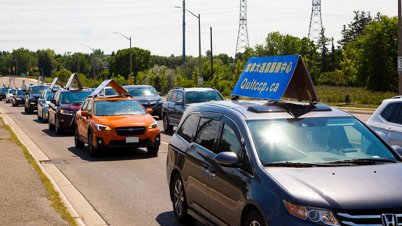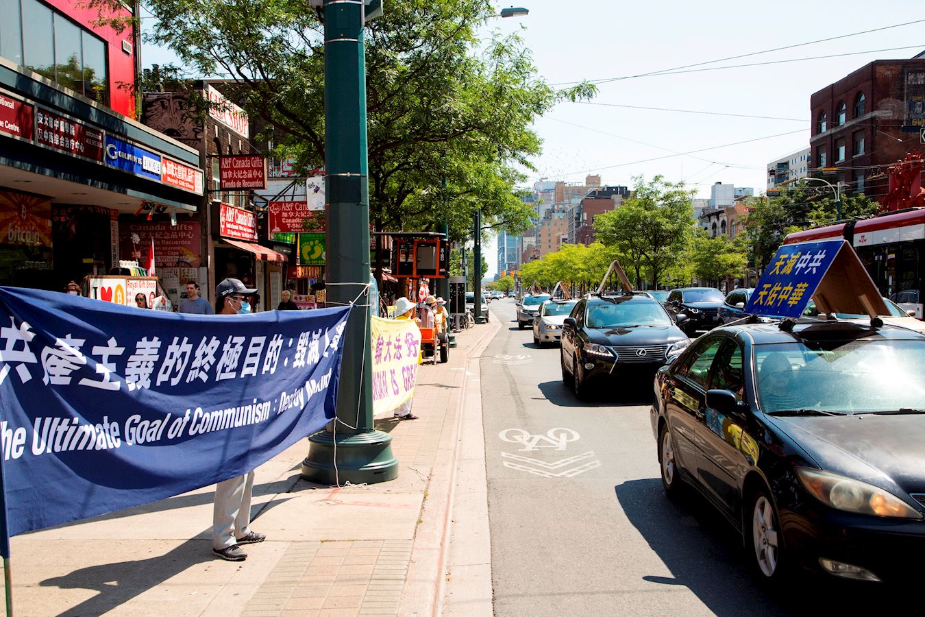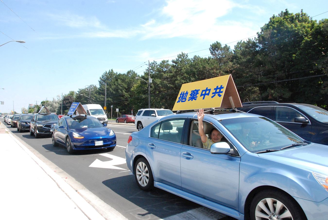 8月15日和8月22日两个星期六下午,加拿大退党服务中心汽车游行在多伦多市中心、万锦市、士嘉堡区及北约克和新市举行。
