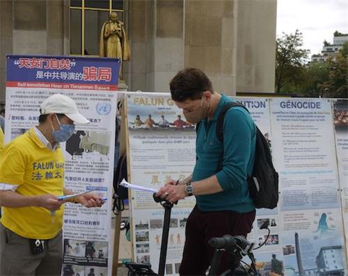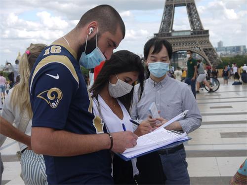 ![]() 图1~4:游人在征签表上签字,希望尽早结束迫害。 |