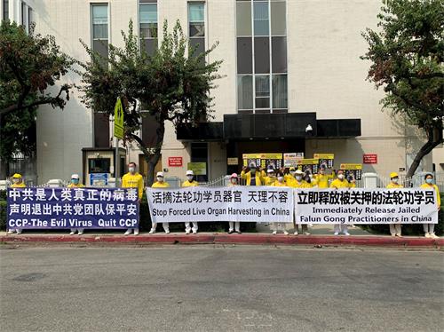 ![]() 图1~2:二零二零年九月十三日,洛杉矶法轮功学员在洛杉矶中领馆前集会,谴责中共迫害,呼吁制裁迫害元凶。 |