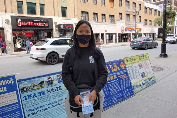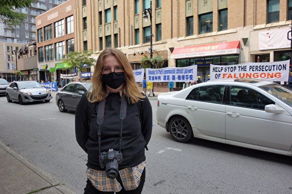 在中领馆旁一家学校读书的Jeanne说,“在蒙特利尔的市中心举行这样的活动,很了不起,很有意义。”她表示,自己对中共迫害维族人等有所闻,但今天才得知对法轮大法修炼者的残酷迫害。她支持法轮功学员在这里反迫害,让真相通过口耳相传,更多人去敦促加拿大政府采取行动,“加拿大政府应该采取行动,制止迫害。”