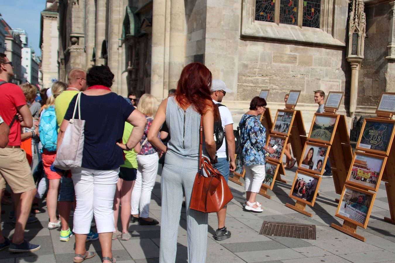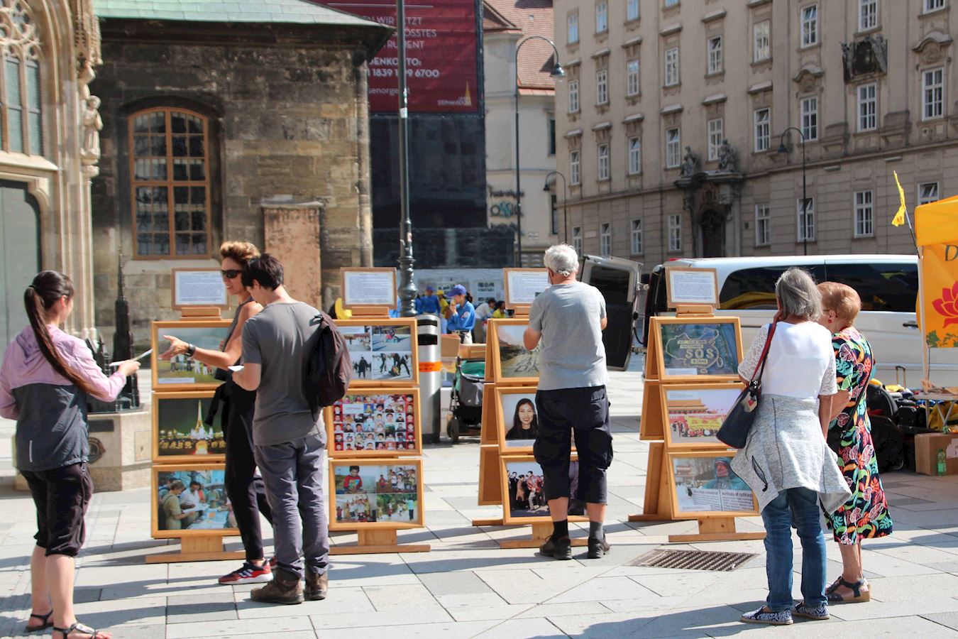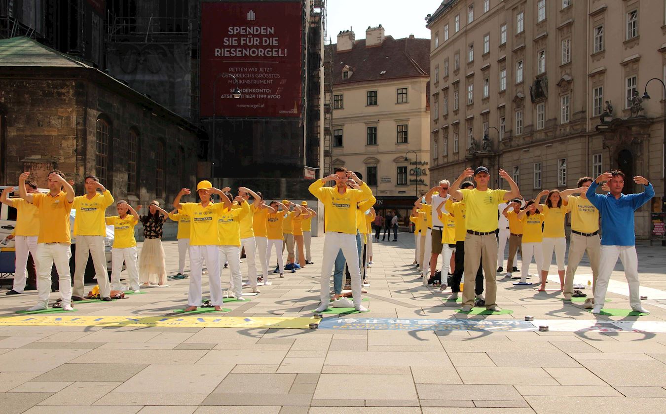 【明慧网二零二零年九月十九日】位于奥地利首都维也纳市中心的史蒂芬广场(Stephansplatz)常被推荐为游维也纳的必到之处。在这里既可看到被誉为“维也纳心脏”的历史悠久的圣史蒂芬大教堂,也可以在琳琅满目的各大品牌商店里选购心仪之物。在过去的多年里,很多人在史蒂芬广场上有了独特的收获——他们可以了解正在中国发生着什么,还可以通过签名帮助那些身陷囹圄的无辜好人,最后还可以带上资料送给更多的人。多年来,法轮功学员不定期在史蒂芬广场举办各种讲真相的活动,平均每两周就会有一次。