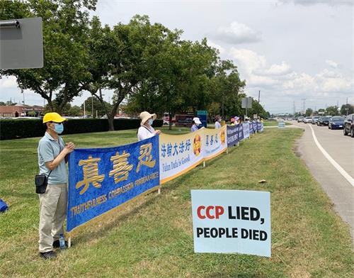 他首先问是否有人付钱给你们?彭女士真诚地说:“我们都是自发自愿来的,就是为了让更多民众能了解到法轮功真相和疫情的真相,否则疫情这么严重,天又热,付再多的钱你看看能让这么多人都出来吗?”学员李先生补充说:“我们都是自愿地利用周末休息时间来告诉人们真相,没有人给我们钱。说实话,现在如果谁给我一百万叫我离开,我也不会离开的,我们根本不是为了钱。”彭女士继续向他解释:“我自己在医学中心上班,李先生是高级电子工程师,我们都有自己的工作和收入。”这位先生又好奇地问:“你们这些人都是有工作的吗?”李先生说:“今天来的学员中,据我知道至少有好几位是博士学位,多数都是拥有高学历的专业人士,在休士顿各行各业,比如石油、医疗和高科技产业工作。”他听了感到很佩服。