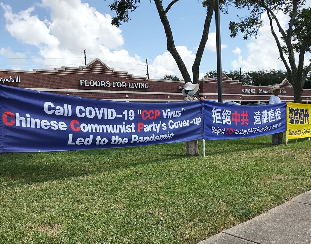 爱尔莎(Elsa)女士是某社区报的记者,那天她正巧看到马路对面的法轮功学员正在展示横幅,感到很好奇。她先在马路中间的隔离岛拍了照片,然后又来到学员面前,想进一步了解情况。学员李先生向她介绍:“我们利用周末时间来这里展示横幅,主要想告诉大家两个信息:一个是希望更多人能了解并知道法轮大法好,这是以真善忍为标准进行修炼的功法,但是很遗憾法轮大法在中国受到了严重的迫害,并且已经持续了21年。另一个就是中共隐瞒疫情造成了武汉肺炎(新冠病毒)的全球大流行,其实我们应该把它叫做中共病毒。”她听后表示非常认同,她又问你们(学员)都来自哪里,明天还会继续吗?是否要去休士顿地区的其它地方?李先生都详细地做了回答。最后,爱尔莎女士高兴地接受了学员送给她的法轮功真相资料和疫情特刊,她表示会更多关注这些事情。