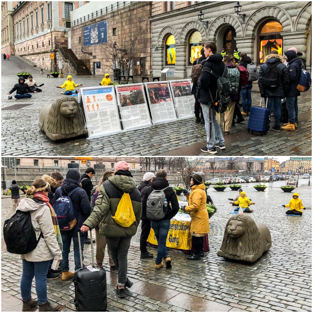 二零二一年一月二日周六,新年伊始,法轮功学员象往常一样,在通往瑞典皇宫的钱币广场向人们介绍法轮大法“真善忍”的修炼原则,揭露中共谎言。他们以演示功法、真相展板等方式把法轮大法的美好与真相带给当地民众和来自世界各地的游客。