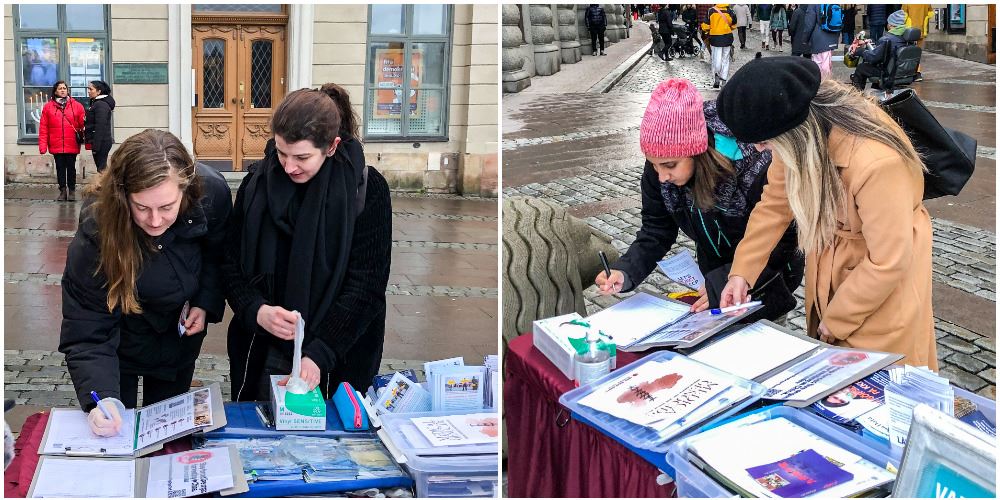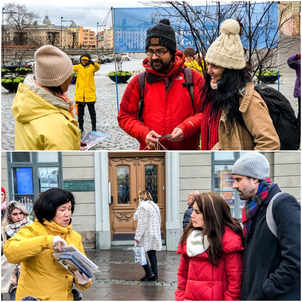 【明慧网二零二一年一月五日】(明慧记者何平瑞典斯德哥尔摩报道)“远离中共、解体中共。中共是一切迫害的根源。中共不仅迫害本国民众的宗教信仰,还干扰其他国家的内政,企图达到控制全世界的目的。你们这件事(讲真相)做得对,我们非常的支持!”来自德国的罗特(Roth)先生和阿斯特丽德(Astrid)女士,在瑞典斯德哥尔摩的钱币广场上与法轮功学员交谈,了解了中共迫害法轮功、活摘法轮功学员器官的真相后,他们毫不犹豫地在“解体中共”的征签簿上签了名,并这样表达了他们的心声。