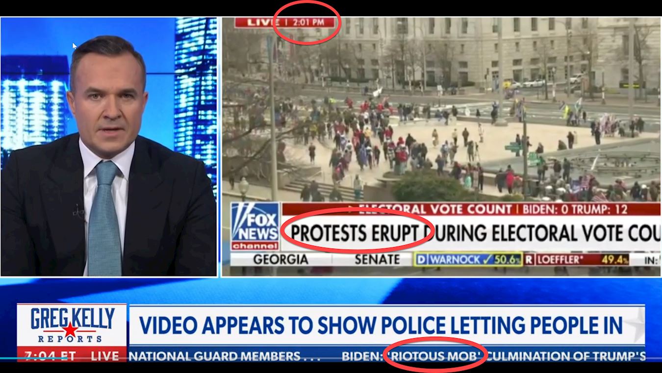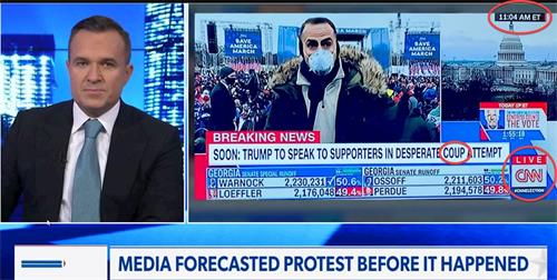 图3:格里-凯利(左)指出:录像资料显示:CNN在1月6日上午11点就已把百万抗议人群成为“叛乱者”(coup),他们似乎早就知道下午会发生什么。