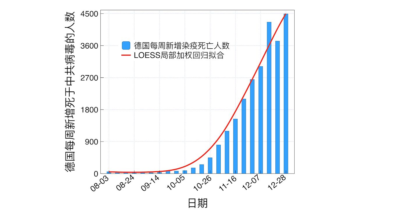 ![]() 图3:2020年8月至12月,德国每周新增新冠病毒死亡人数曲线。(数据来源:WHO官网) |