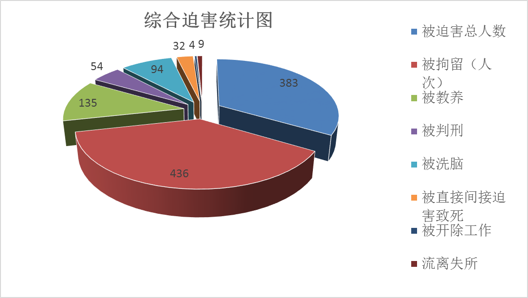 据不完全统计,从一九九九年七月二十日至二零二零年八月三十日,这二十多年中,新宾县法轮功学员被中共恶党迫害总人数为三百九十三人次,其中:被直接和间接迫害致死三十二人、被非法判刑五十四人次、被非法劳教一百三十五人、被非法拘留四百三十七人次、被非法洗脑九十四人、被非法开除工作四人、被迫流离失所九人、被经济迫害被经济迫害1348660元、非法查元、非法抄、卡要163200元、政法委勒索211640元。