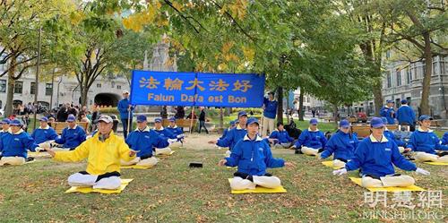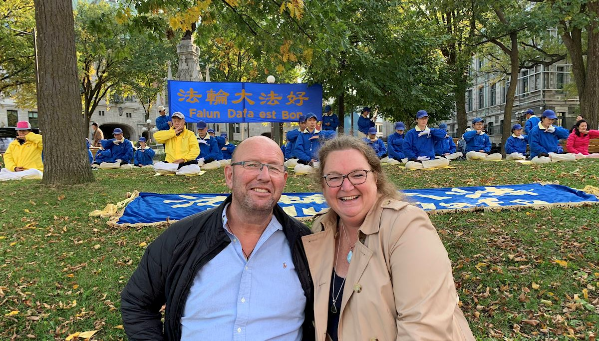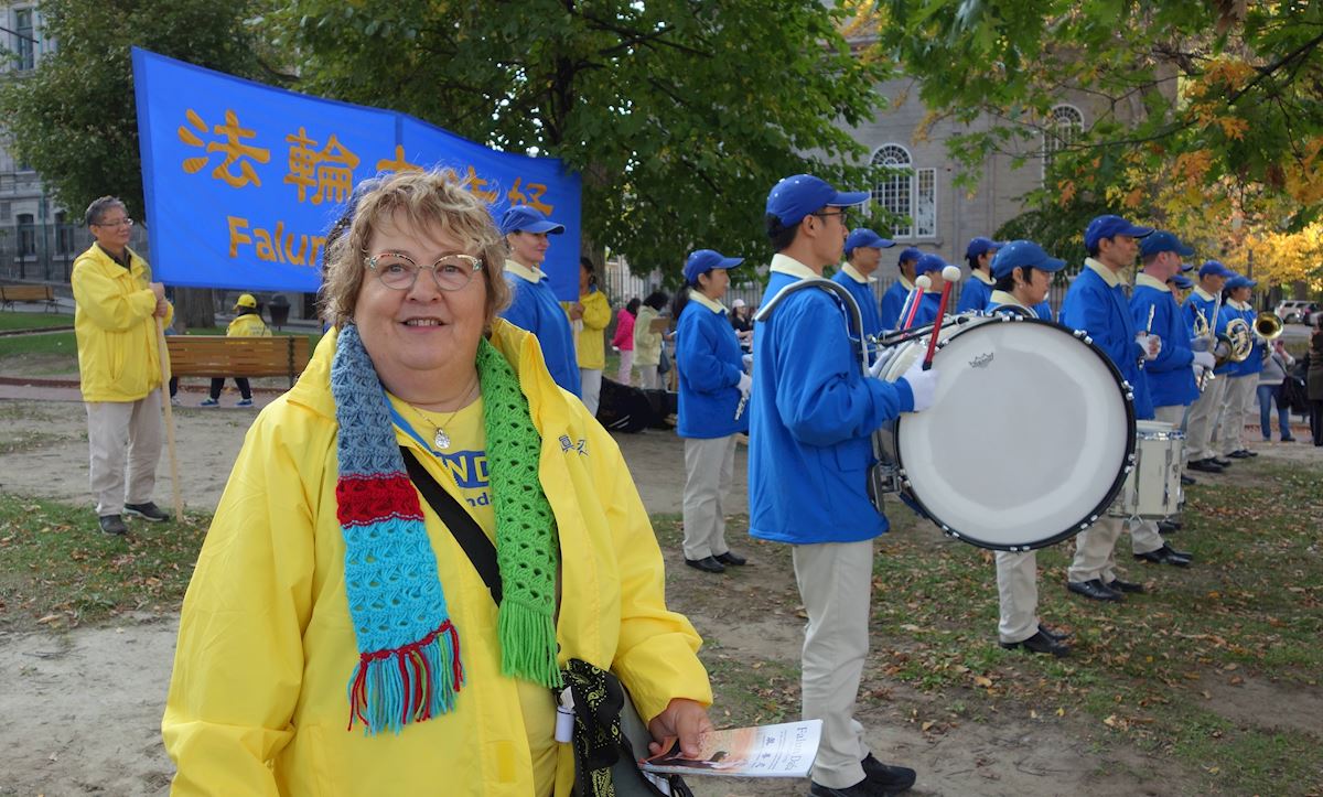 布雷吉的职业是生活教练(Life Coach),她和先生来魁北克旅游,看到法轮功学员和平反迫害的活动,感到很高兴。“我很想加入他们。不仅仅是打坐,还因为他们所做的事在唤起人们关注一个长期以来应当面对的问题。”布雷吉说。
