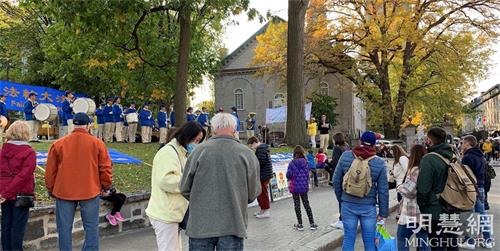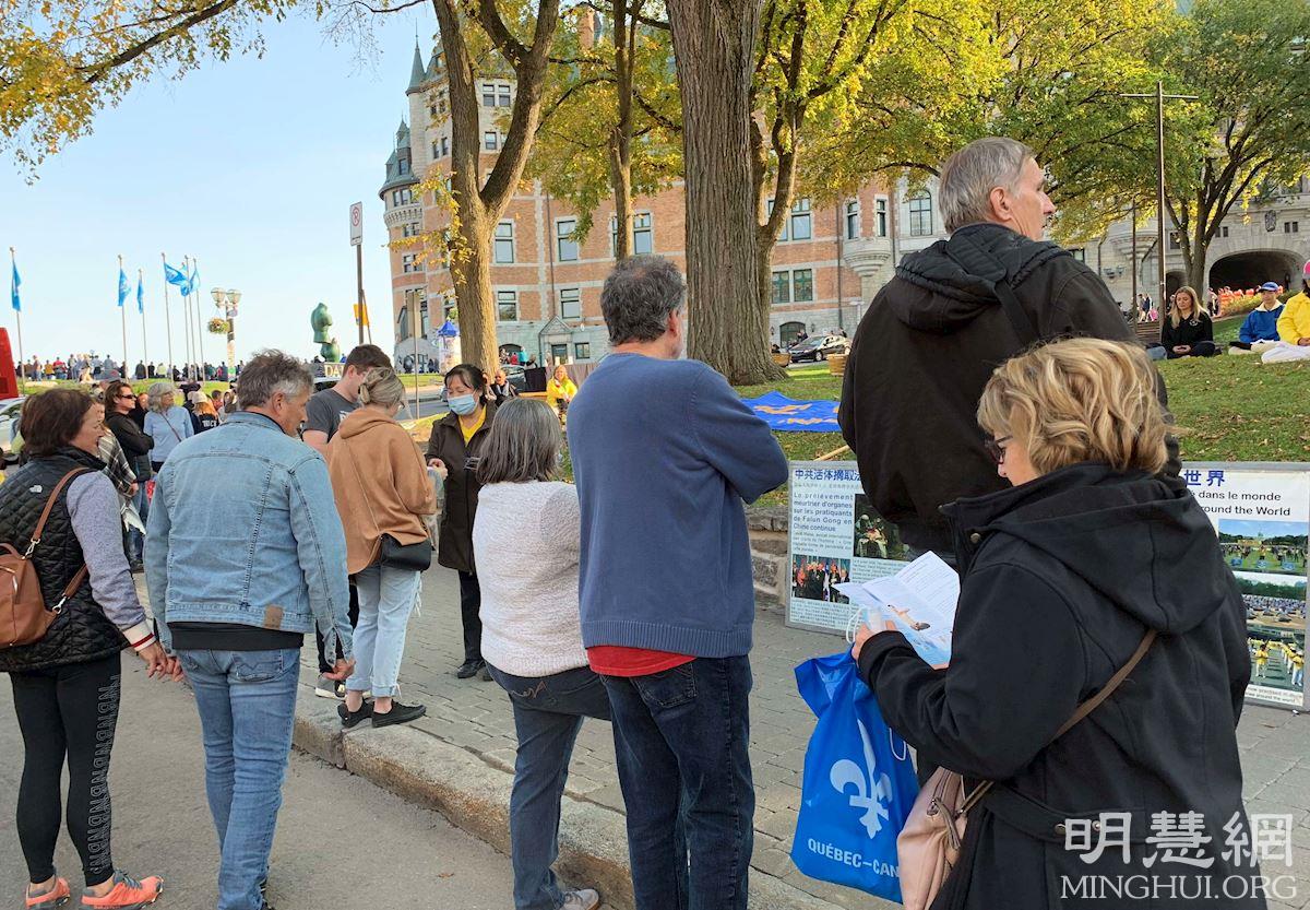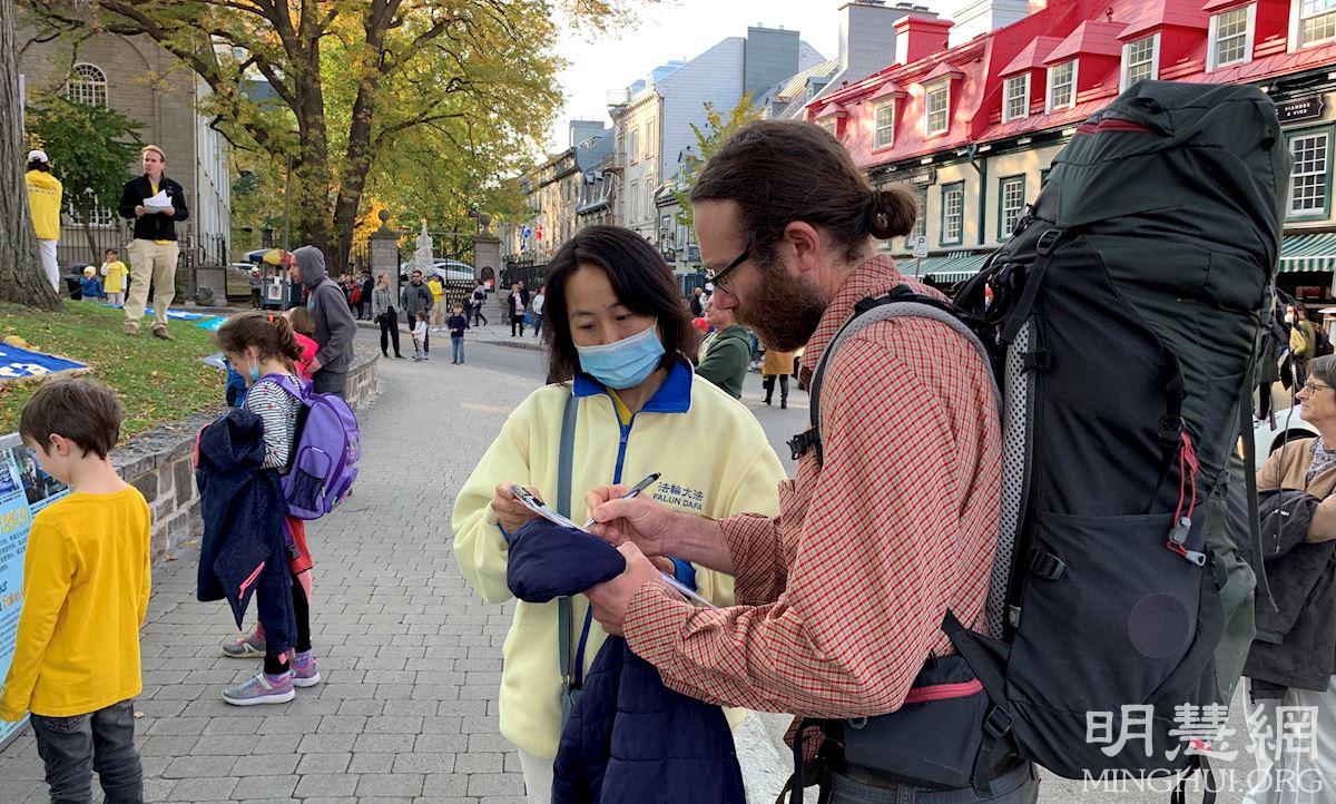 ![]() 图1~3:2021年10月9日,法轮功学员在北美知名古城魁北克市老城传播真相。 |