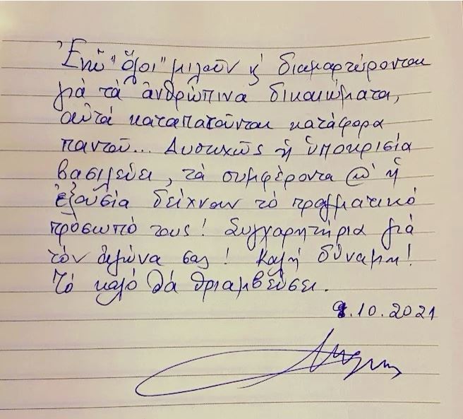 “尽管每个人都在谈论人权和为其抗议,人权仍然随处被公然侵犯。不幸的是,伪善的统治、利益和权力暴露了它们的真面目!祝贺你们的抗争,要坚强,善良终将取胜。”
