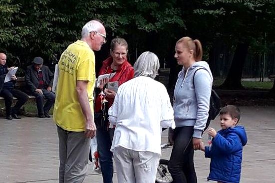 九月二十四日,法轮功学员首先来到该市的中心广场炼功,并向行人派发真相资料。不同年龄层的人都愿意接受资料,并认真了解法轮功真相,以及法轮功在中国受到的迫害。