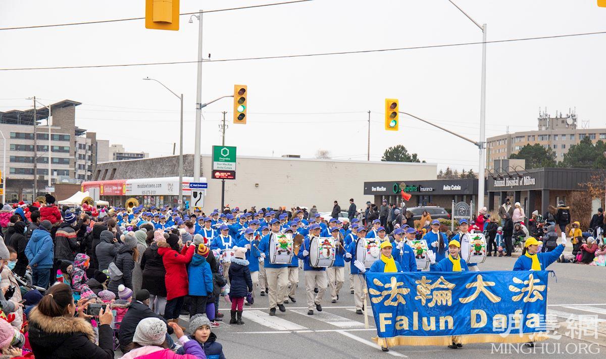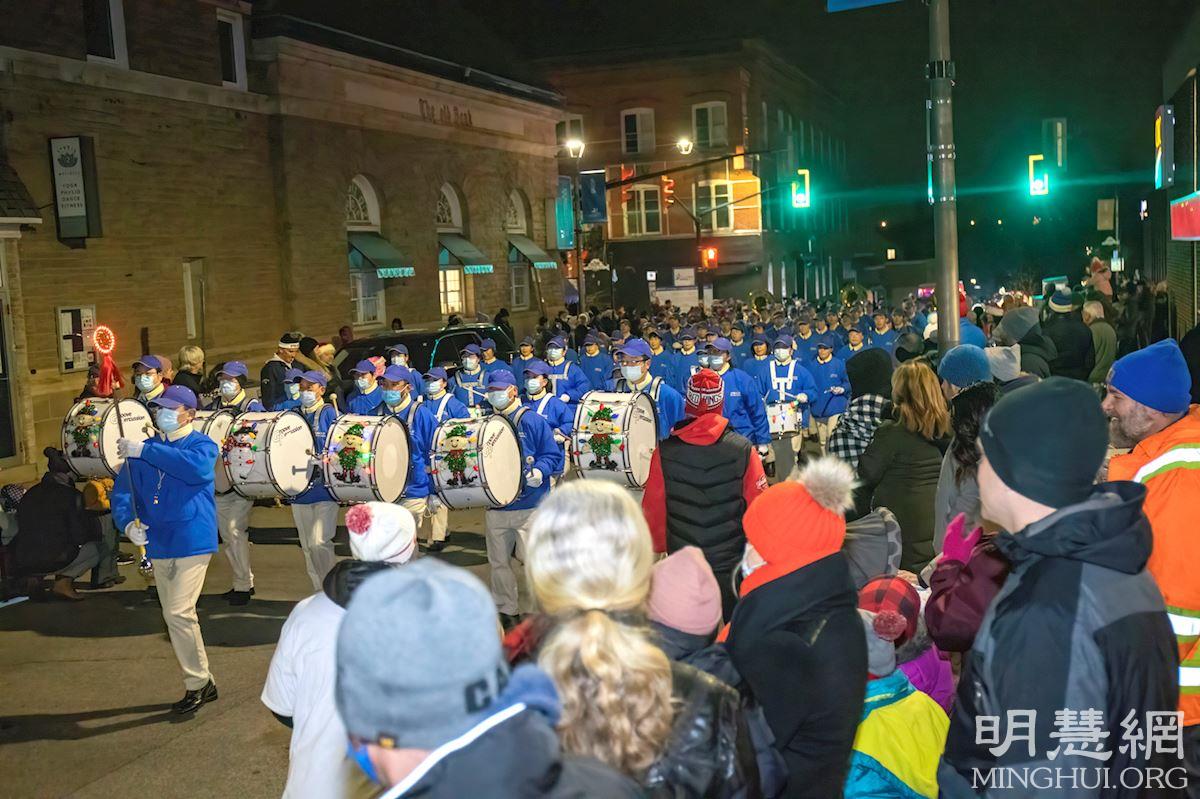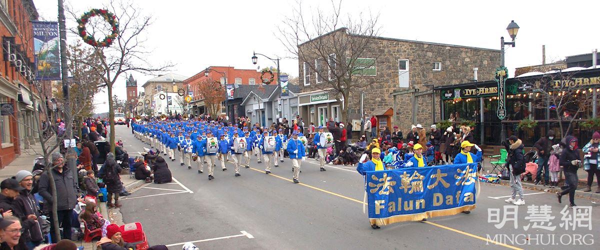第一场是十一月十三日(星期六)下午五点在伦敦市(London)举行;第二场是十一月二十日(星期六)下午五点在乔治敦(Georgetown)举行;第三场是十一月二十一日(星期日)在米尔顿(Milton)举行。游行结束后,米尔顿(Milton)组办方负责人德林(W. Deline)给天国乐团的协调人打电话表示:“非常感谢法轮功学员们参加游行。现场的观众很多,对法轮功的方阵也很热情。”