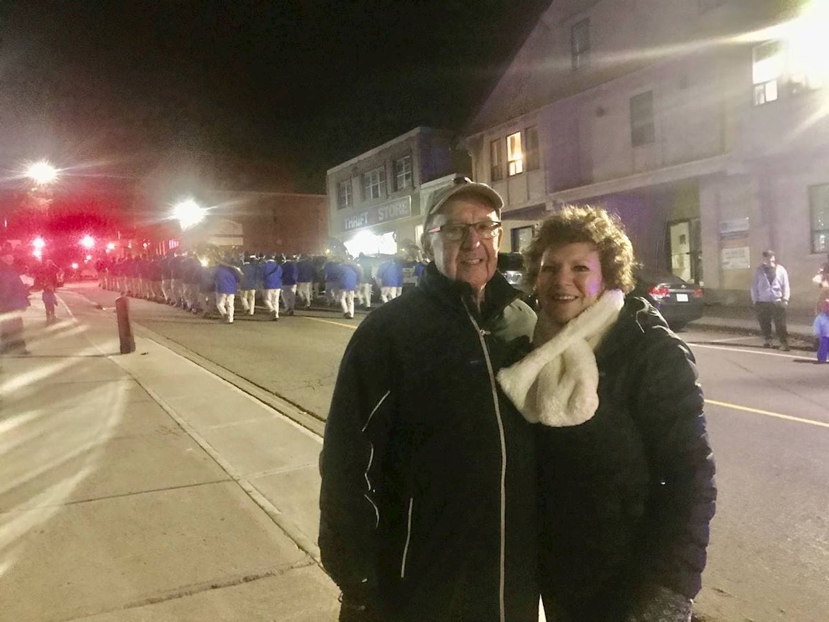 乔治敦市的简(Jane)和乔(Joe)夫妻俩每年都会来看圣诞老人大游行,当天国乐团经过时,简一边鼓掌一边向乐团致意。记者走上前与她打招呼,简激动地与记者握手、拥抱。