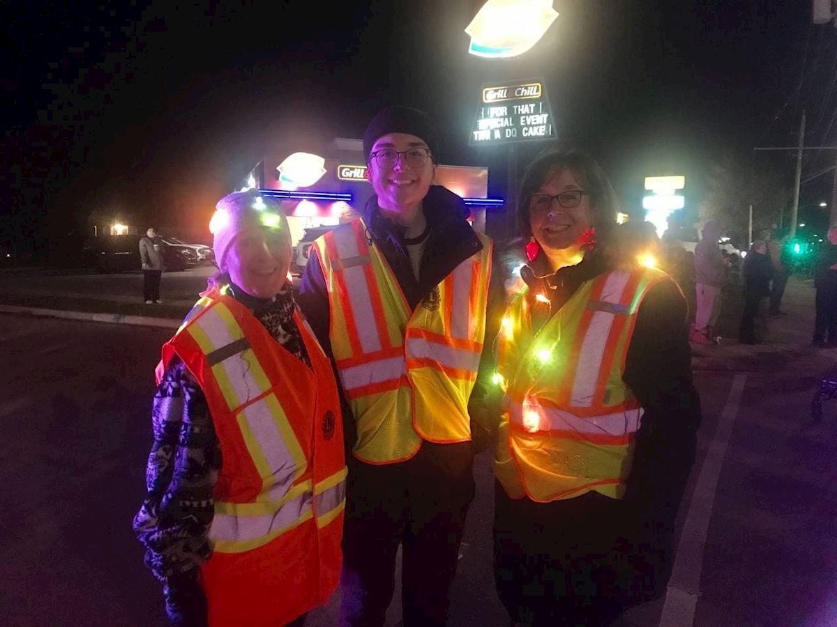 ![]() 图12:乔治敦市的游行三位工作人员辛迪(Cindy)、卡尔(Carl)和凯茜(Cathy)(从左到右)表示能邀请到天国乐团是我们镇的荣幸。 |