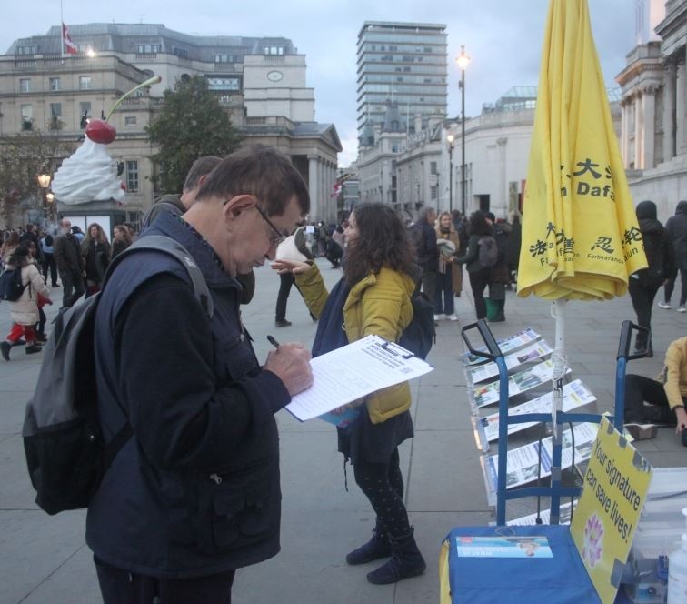 一位中年男士说:“我几年前已经签过请愿书了,我可以再签一次吗?”随后认真地签下了自己的名字。