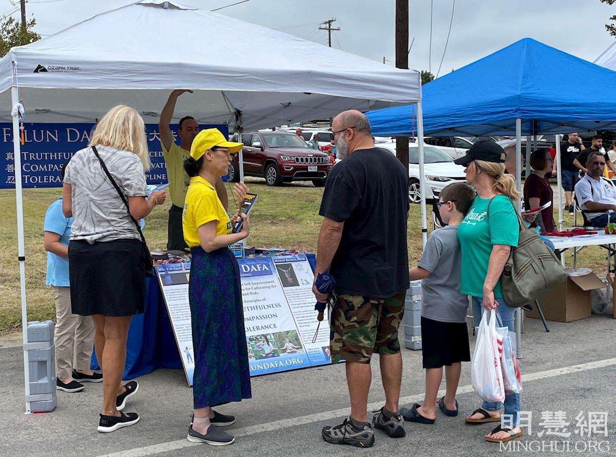 米歇尔(Michelle)女士与朋友一起来花生节游玩,她说收获很大,因她知道中共迫害地下教会的基督徒,现在又知道了它对法轮功的迫害,明白了这是中共的本质,它就是反对任何正信信仰。