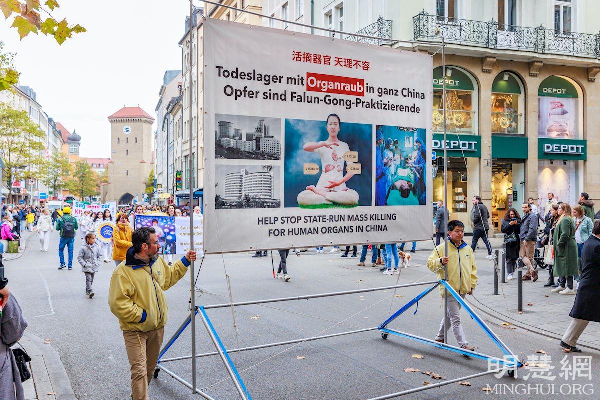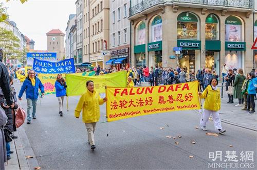 法轮功学员在慕尼黑繁华地段游行,途径慕尼黑王宫、国家剧院、著名奢侈品街马克西米利安大街(Maximilianstraße),还经过慕尼黑第一座城门伊萨门(Isartor)、塔尔大街(Tal)、著名的谷物市场(Viktualienmarkt)和森德灵门(Sendlinger Tor),最后抵达卡尔斯广场(Karlsplatz),受到两旁观众的瞩目。很多路人签名声援法轮功学员反迫害。