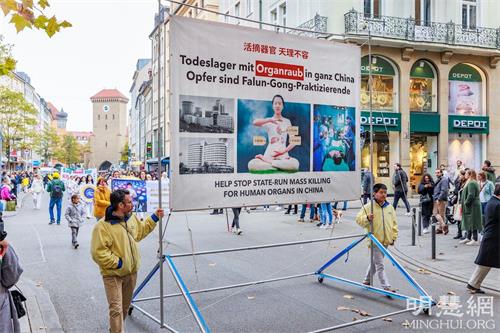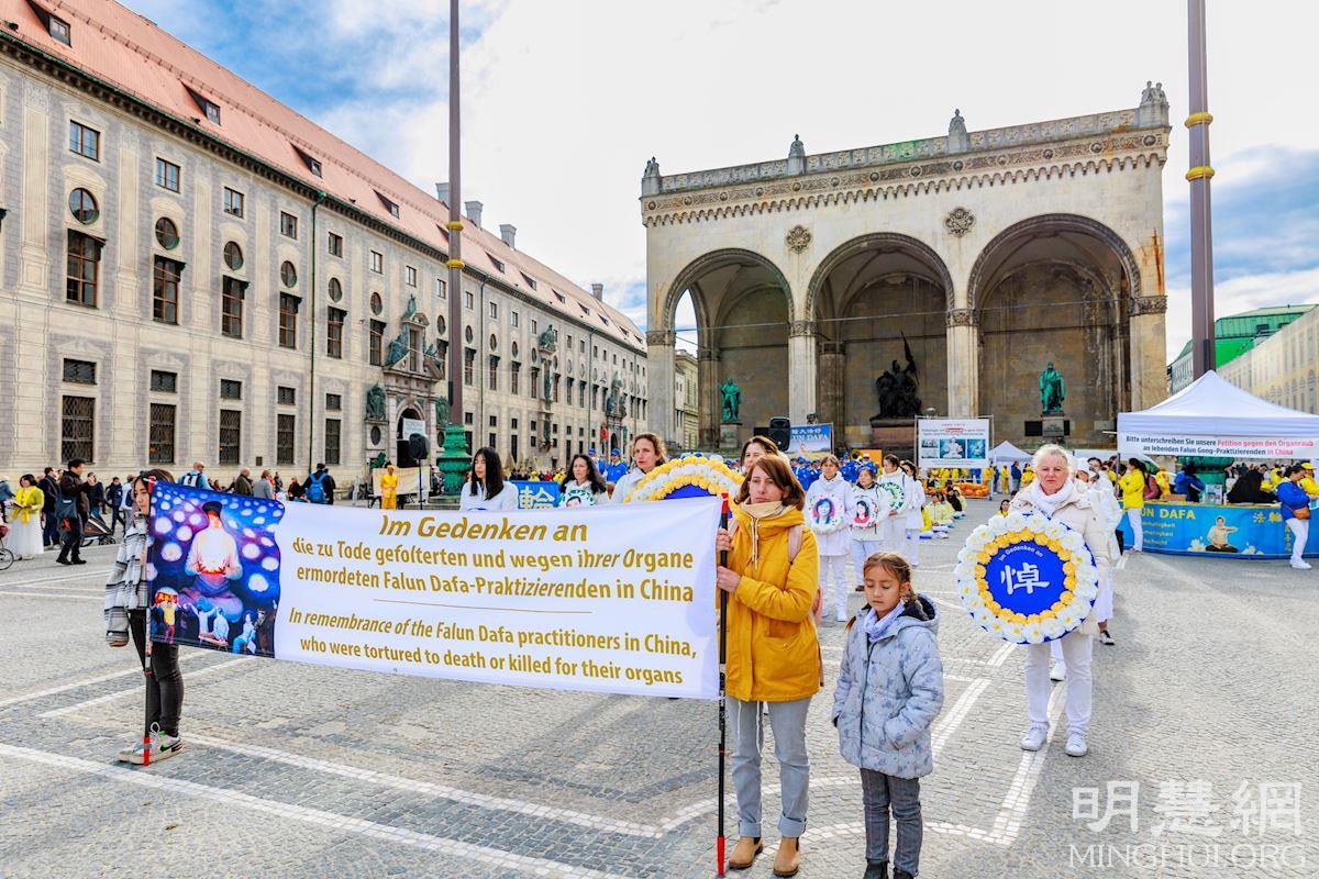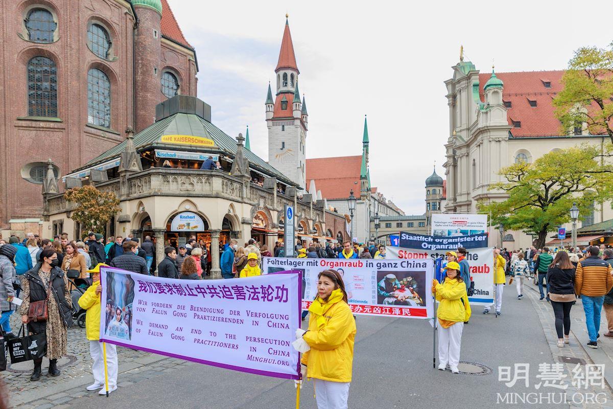 二零二一年十月三十日,来自德国、瑞士和奥地利的部份法轮功学员续前一日,接着在德国慕尼黑举办的大型游行集会活动,向民众展示法轮功的美好,以及中共迫害法轮功的邪恶,呼吁德国社会关注中共对法轮功的迫害。
