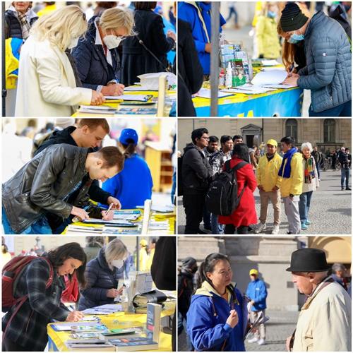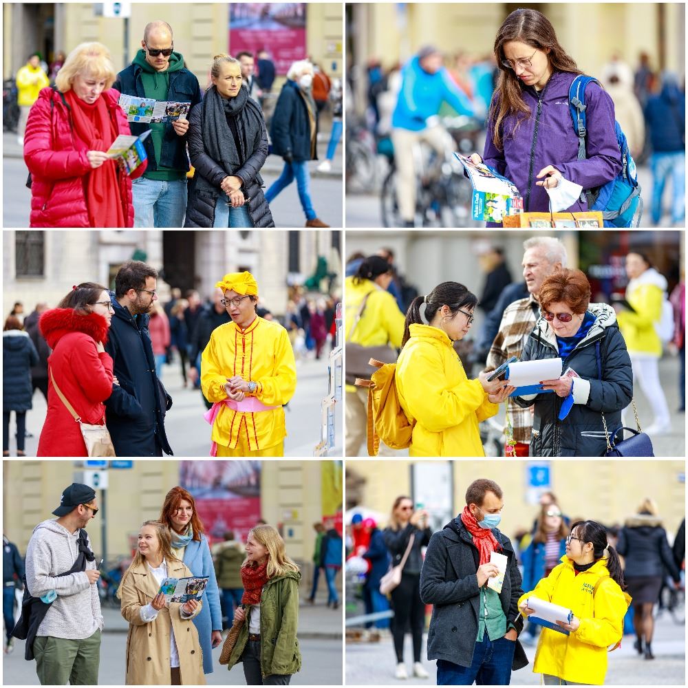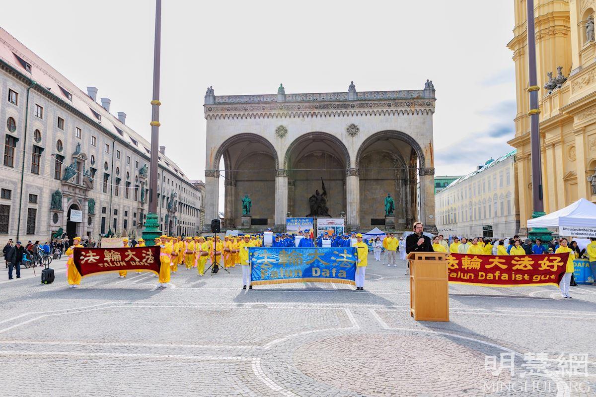 当天,法轮功学员并在慕尼黑王宫旁边的奥迪安广场(Odeonsplatz)的集会上,欧洲天国乐团、德国腰鼓队、波兰与捷克的舞龙舞狮队的表演,和功法演示,吸引了很多路人驻足观看。很多人跟法轮功学员交谈,了解什么是法轮功,为什么中共不能容纳修炼真、善、忍的团体,以及中共迫害法轮功和活体摘取法轮功学员器官的罪行。很多人从内心感受到法轮功修炼真、善、忍的美好,纷纷签名声援法轮功学员反迫害。也有的中国人当场退出中共组织。