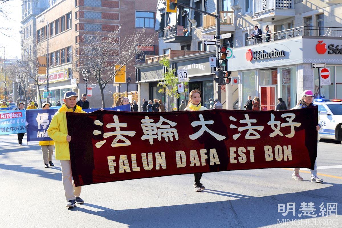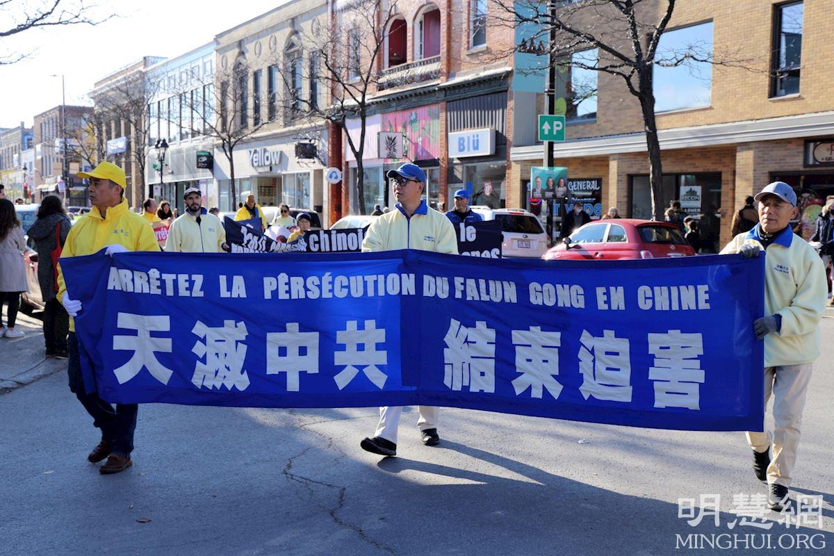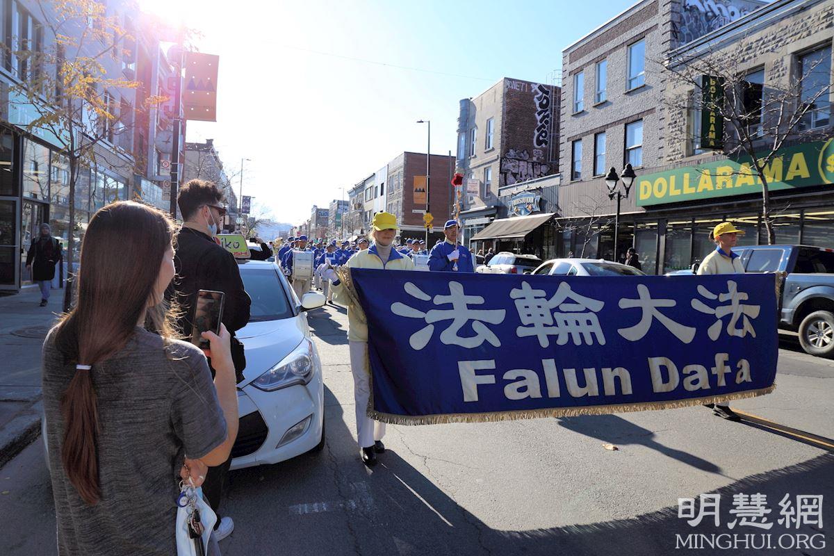 【明慧网二零二一年十一月九日】二零二一年十一月六日,魁北克部份法轮功学员在蒙特利尔举行反迫害游行,向民众传递法轮大法好、中共迫害和活摘法轮功学员器官的真相。沿途获得市民的热烈欢迎和支持,有市民表示,法轮功学员反迫害,与每个人都息息相关,应得到更广泛的关注。