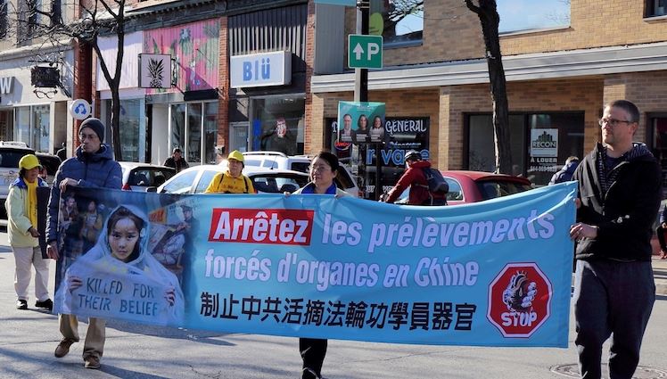 加拿大蒙特利尔法轮功团体举行反迫害游行