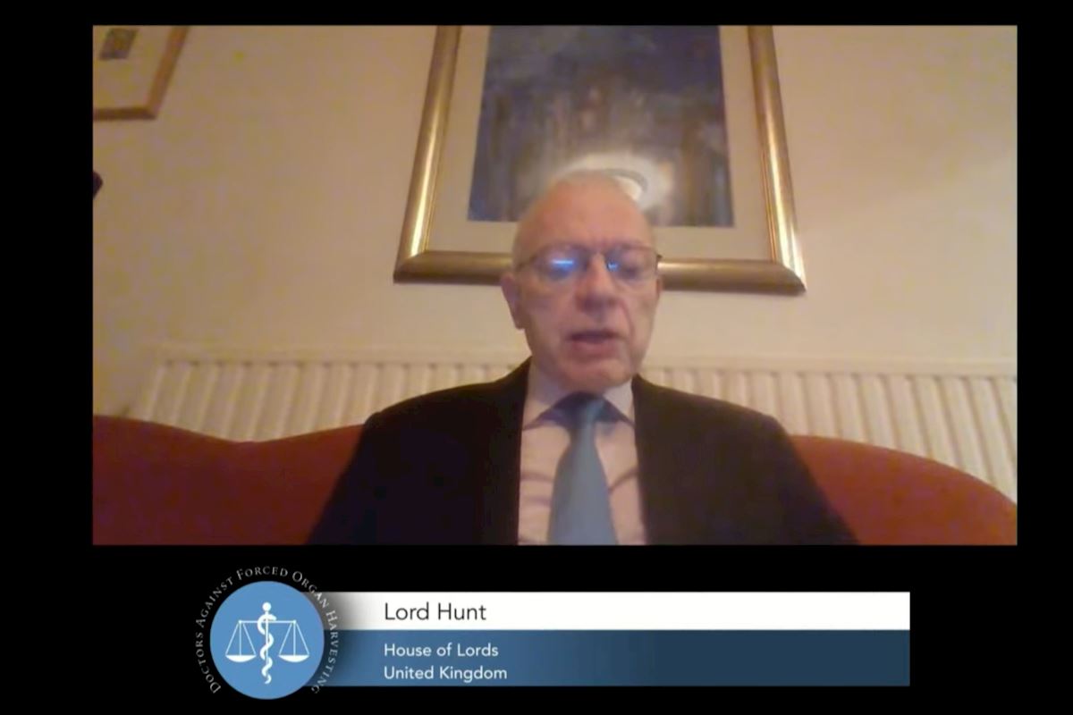 前英国卫生部部长,英国国会议员亨特勋爵(Lord Hunt)在发言中谈到,当他听说中共活摘器官罪行时非常震惊。他认为应该完善立法,禁止去国外获取非自愿捐献的器官,特别是第三方还会获得暴利时。他还特别提到人体展中用到的塑化尸体同样来源不明,应该有相应的立法要求提供所有的讯息,尽力制止中共可恶的罪行。
