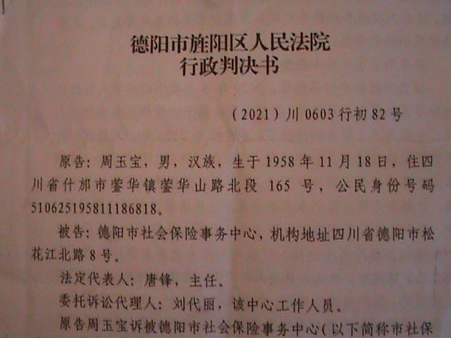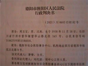 二零二一年九月十六日周玉宝到德阳市旌阳区法院拿到了判决书。