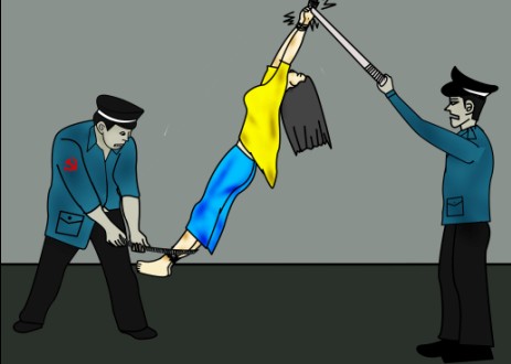 到集训队的第二天,警察于芳丽把我带到一个专门迫害大法弟子的空屋子,把我的手反捆在一起,让我站到凳子上,男队长吴洪勋把绳子吊到铁栏杆上,一直往上拽绳子,警察关杰把我的双腿捆住,把凳子撤掉,我就被吊起来了。吴洪勋在上铺床上用电棍电我的头,于芳丽在下面电我的手、胳膊,关杰使劲摇捆绑我双腿的绳子。不知过了多长时间才把我放下,后来我的左胳膊和手很长时间不好使。