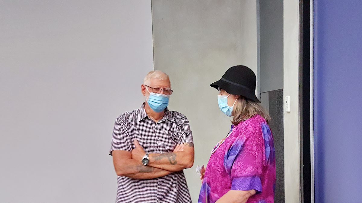 ![]() 图4:退休护士洛林(Lorraine,右)和法轮功学员交谈。 |