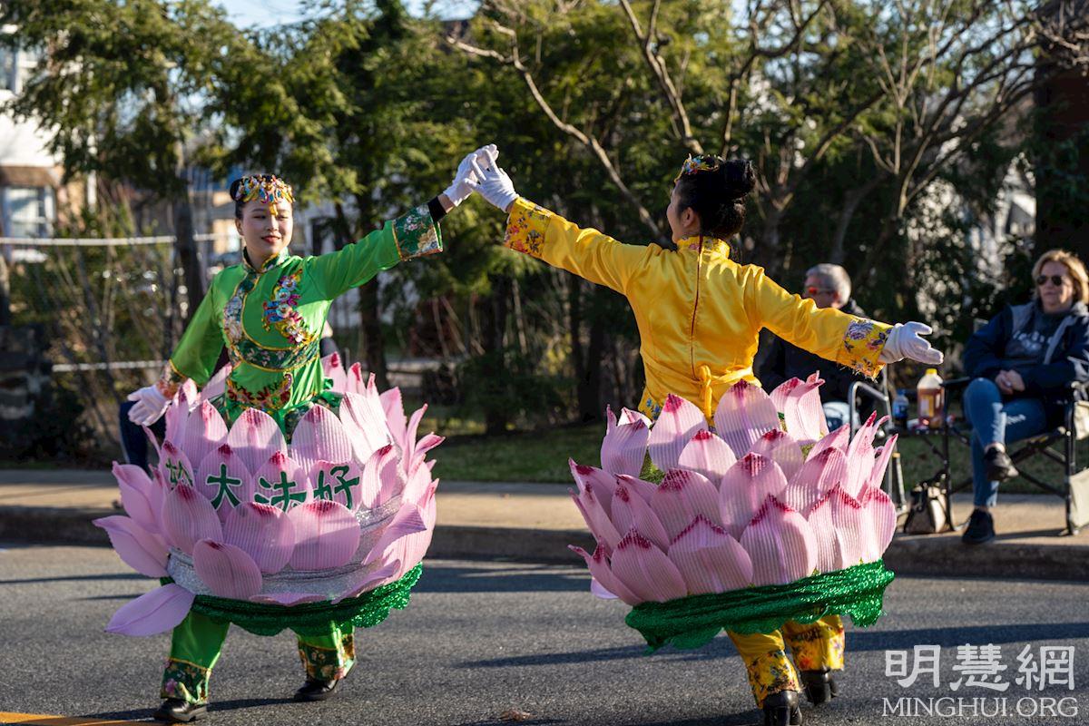 ![]() 图3:法轮功学员在圣诞游行中表演莲花舞。 |
