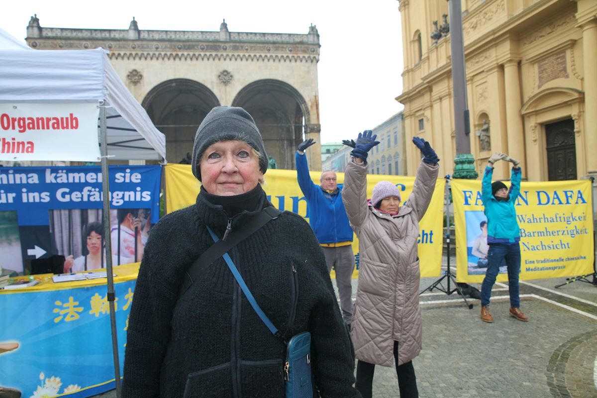 二零二一年国际人权日之际,法轮功学员于十二月十三日在慕尼黑奥迪安广场(Odeonsplatz)举办活动,学员展示功法,向人们讲述真、善、忍的美好。同时揭露中共迫害法轮功和活摘法轮功学员器官的真相,呼吁德国民众给予关注,提醒德国社会不能只顾眼前利益放弃普世价值。不少民众签名声援法轮功学员反迫害。